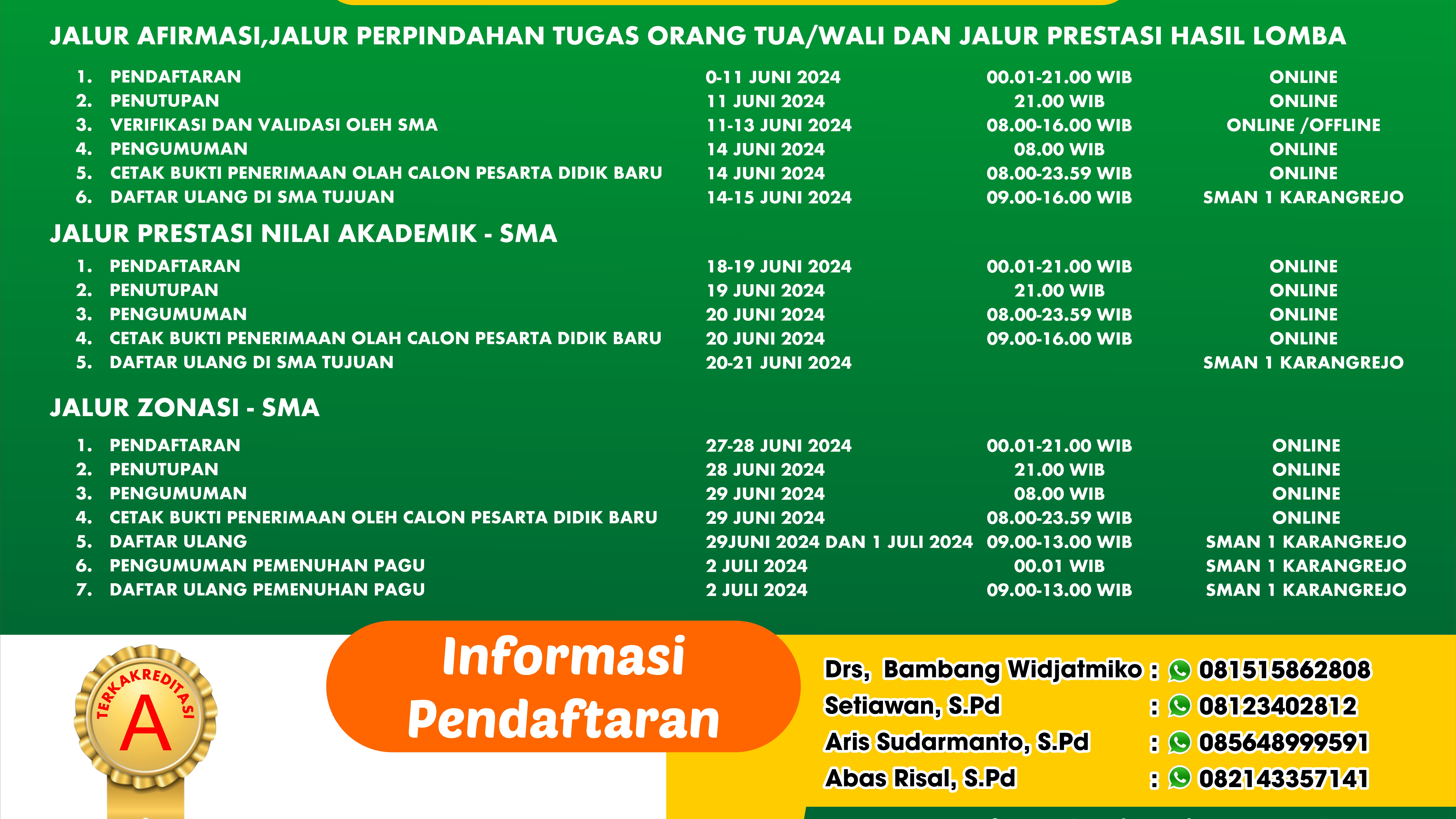 PENGUMUMAN HASIL PPDB SMAN 1 KARANGREJO TAPEL 2022/2023 JALUR ZONASI